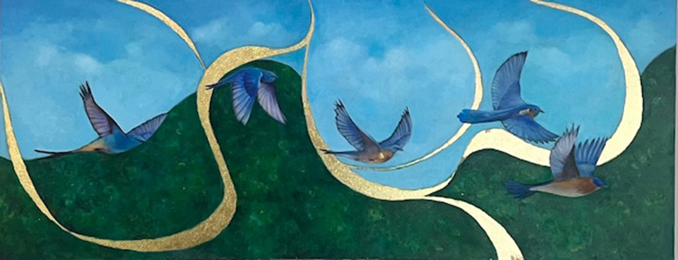 Through the years I have evolved though many genres, including realism, impressionism, imaginal, abstract, surrealism, and now a combination of them all. I have been using gold leaf to create a lyrical abstract flow through the painting, then adding the beauty of nature to bring the viewer into the present. The effect is one of dynamic aliveness. In experiencing my artwork, I hope viewers are moved by the radiant beauty into a state of internal awe, connecting to them to their true nature of Oneness with all.